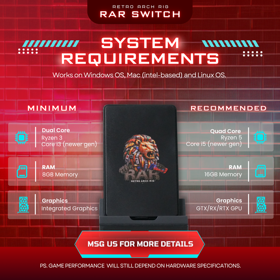 - RAR SWITCH is a bootable drive and has its own Operating System, not a typical Plug 'n Play application. Your main OS will not be affected.